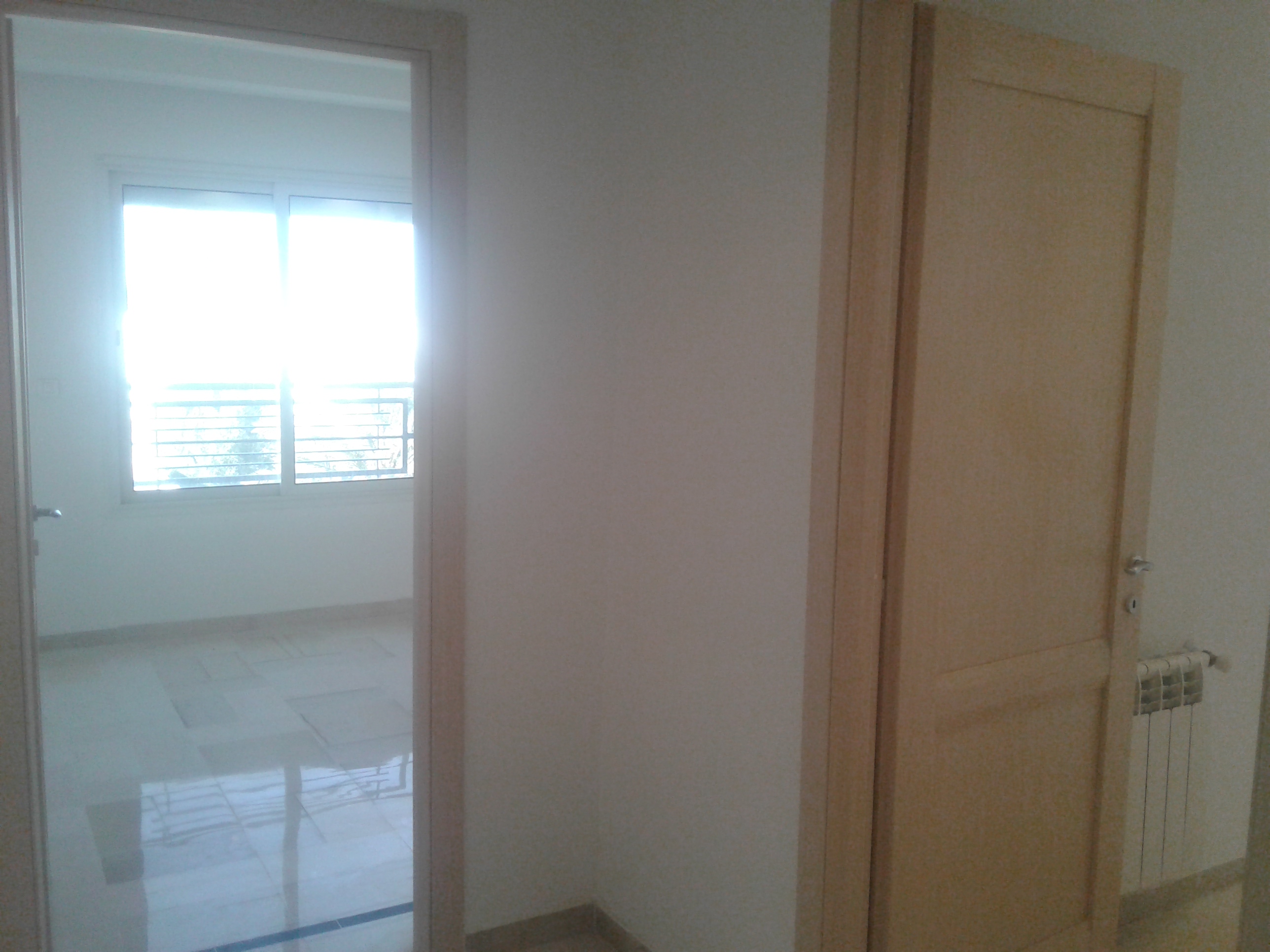 MR_1317 : Cet appartement est situé dans un quartier résidentiel haut standing bien sécurisé et clôturé . La partie jour dessert un salon lumineux tapissé en marbre. La cuisine est équipée par une hotte, plaque et four et aménagée. Le compartiment nuit contient trois énormes chambres à coucher avec trois salles de bains.