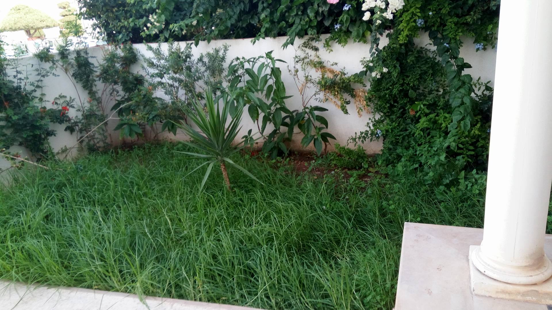 Au rez de chaussée donnant sur un sallon salle a mangé ,la chambre et la cuisine équipe : gaz, frigo, micro onde qui donne accé a une terrase et une petit jardin a l’arrière de la maison et une salle d’eau visiteur.
